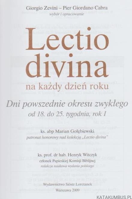 - TYTUŁ Lectio divina na każdy dzień roku cz. 11 Dni powszednie okresu zwykłego (rok I)